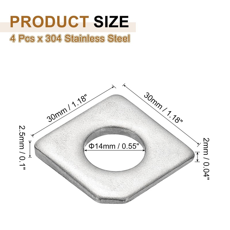 • Advantages: Square washers are made of rust-proof and corrosion-resistant 304 Stainless Steel. They have excellent heat and low temperature strength, good oxidation resistance, durable, not easy to break or deform, suitable for indoor and outdoor use.