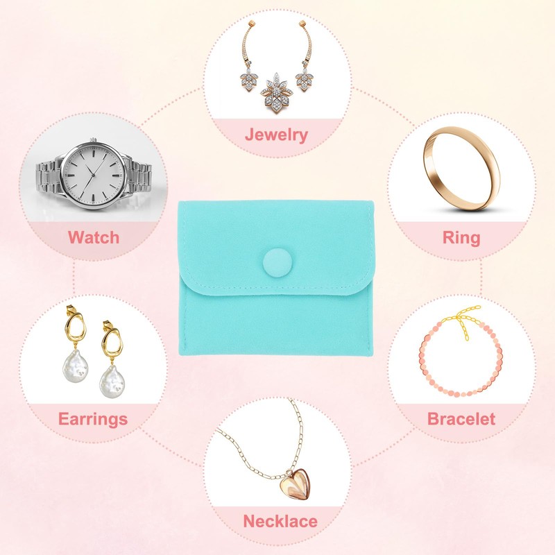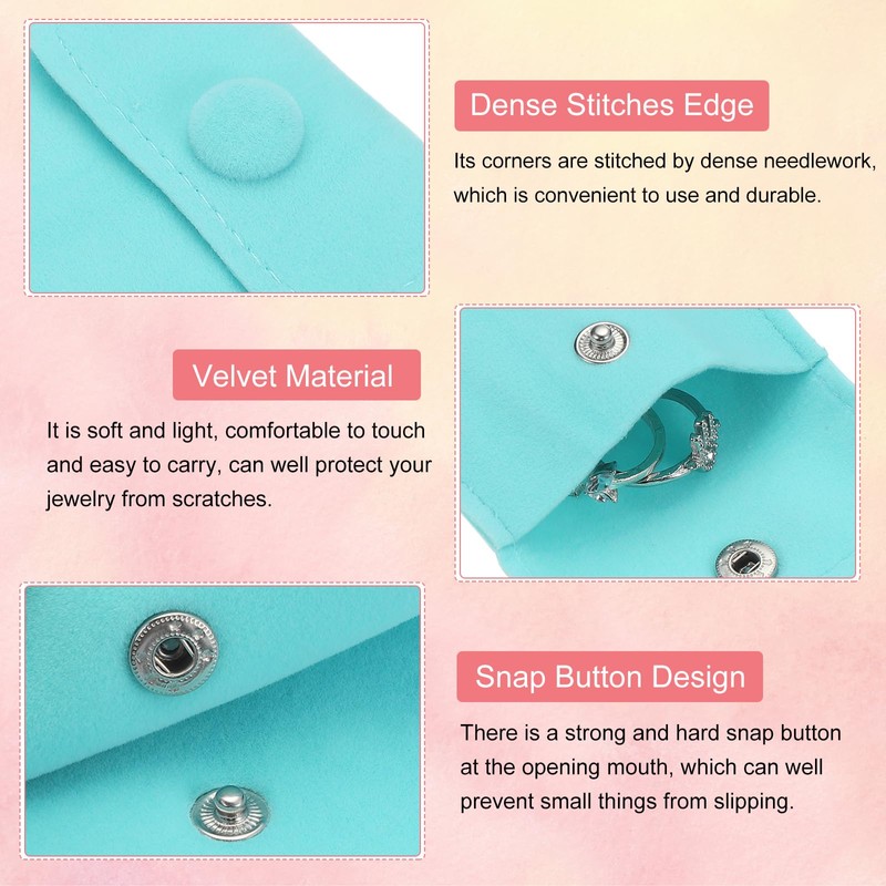 - Advantage: Made of velvet, it is soft and light, comfortable to touch and easy to carry, it can well protect your jewelry from scratches. Dense Stitches Edge: Its corners are stitched by dense needlework, which is convenient to use and durable. Snap Button Design: There is a strong and hard snap button at the opening mouth, which can well prevent small things from slipping.
