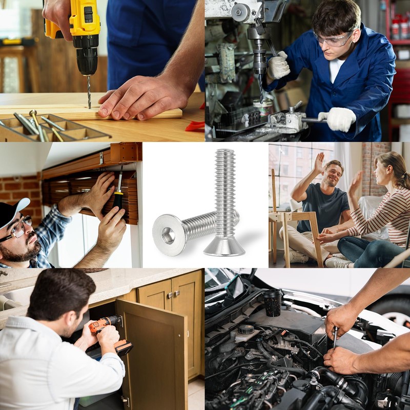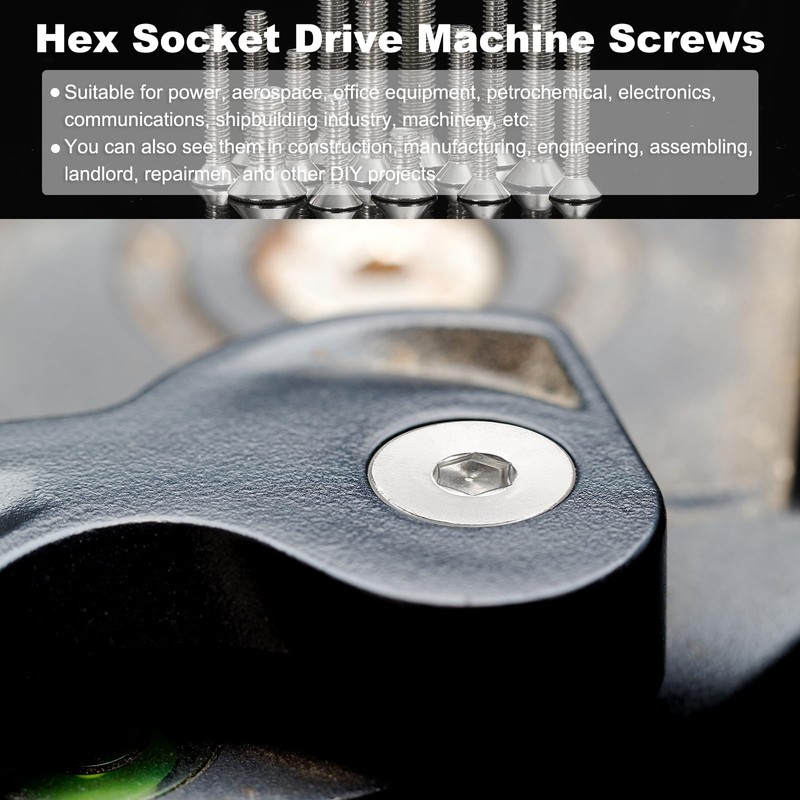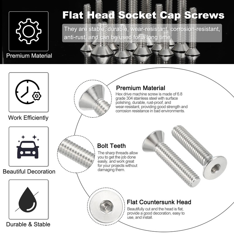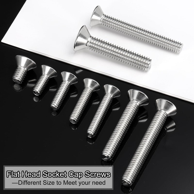 • Good Stability & Beautifully Surface: Hex drive countersunk bolts with clear threads, provide stability and can be used for a long time. Beautifully cut and the head is flat. provide a good decoration, easy to use and install