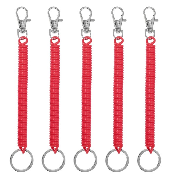 [PATIKIL] リトラクタ ブルコイルスプリングキーチェーン 5個入り 紛失防止キーチェーンホルダーラニヤードコード 金属ロブスタークラ スプキーリング17cm キーウォレット用 ディープレッド