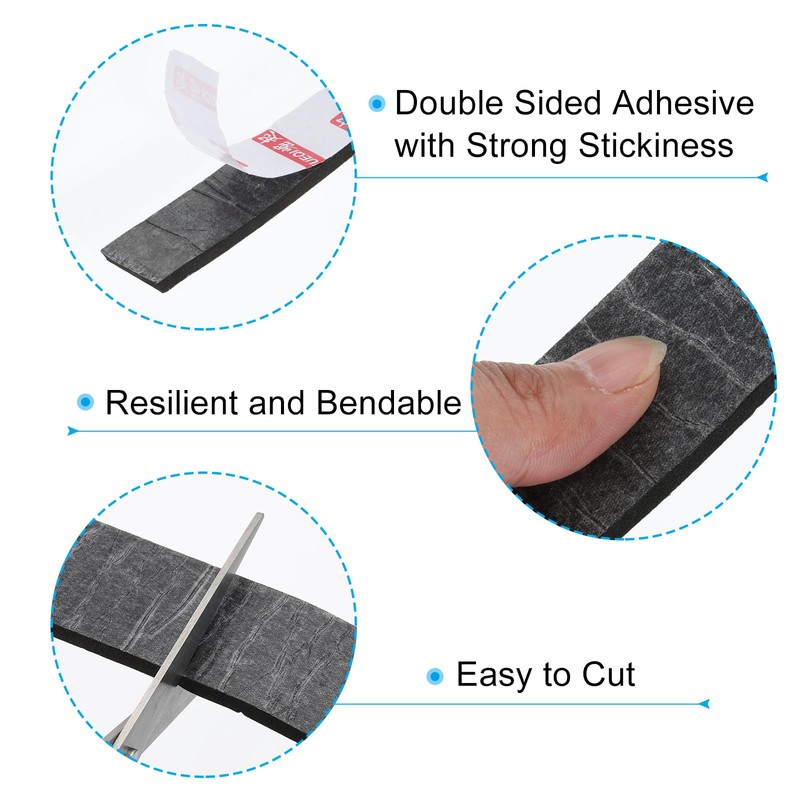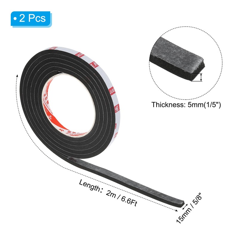 - Spezifikation: Material: EVA; Farbe: Schwarz; Stärke: 5mm(1/5"); Pro Größe: 2000 x 15mm/6.6Ft x 5/8"(LxB); Verpackungsliste: 2 Rollen x Doppelseitiges Schaumstoffband
