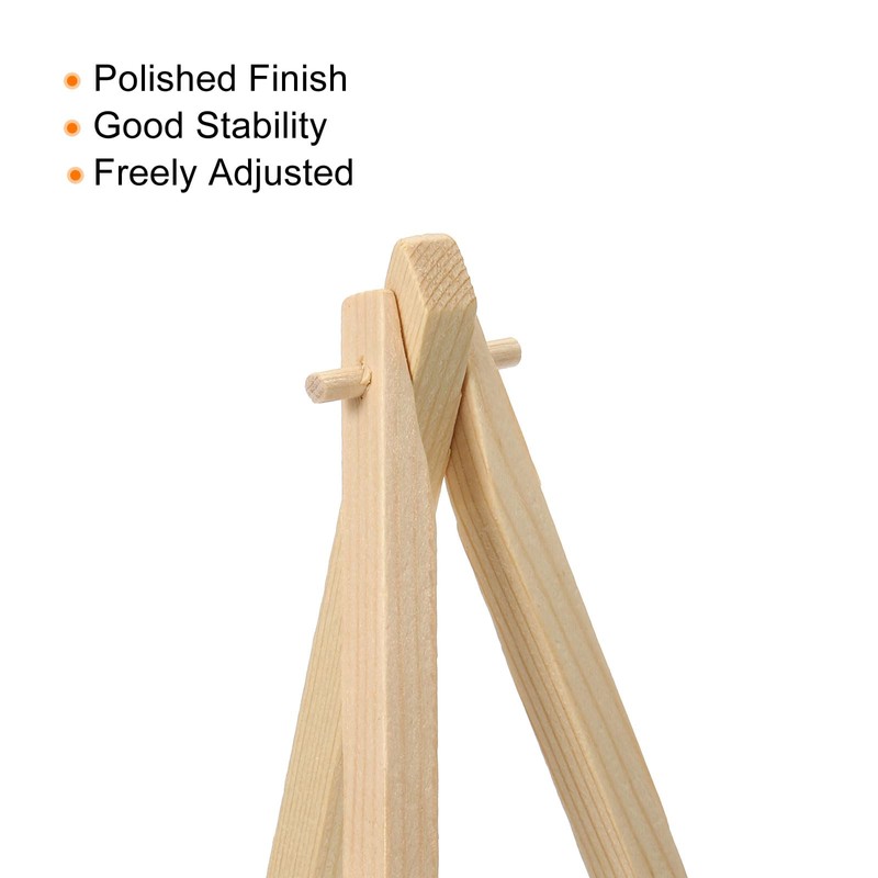 - Advantage: The mini easel‘s material is hard and firm and has been polished, so it has a smooth surface, not easy to hurt hands. It is a triangular design, has light and stability features, supports small photos for display, and ensures the things don't fall or wobble during use.