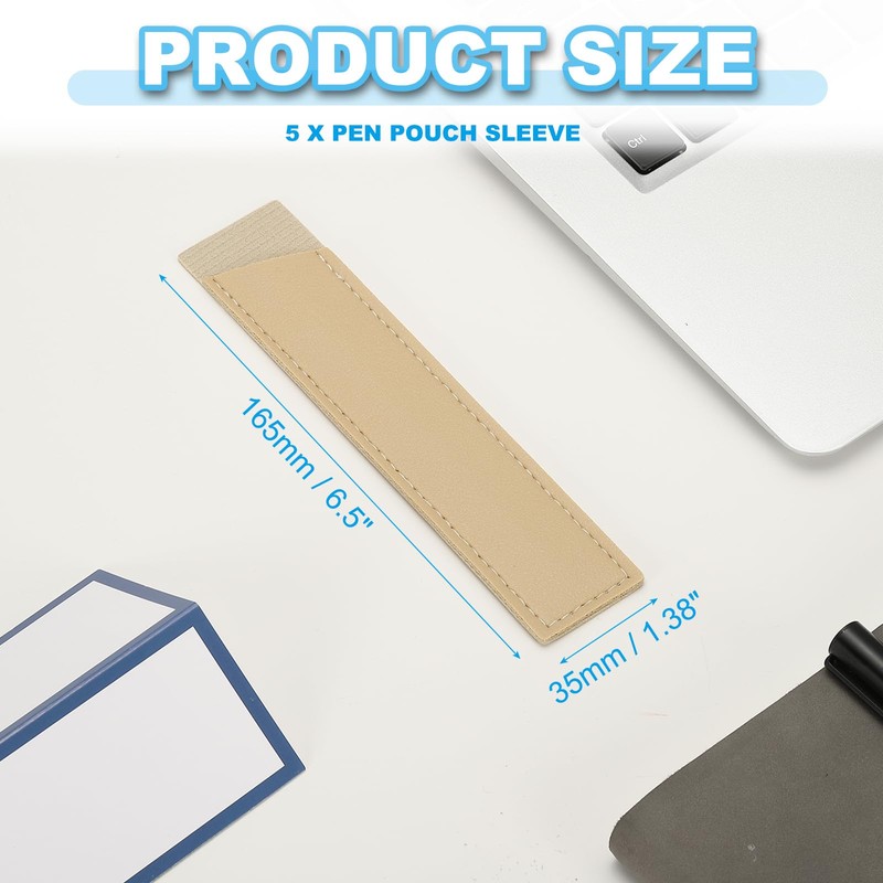 - Specification: Color: Khaki; Material: Leather; Size: 165 x 35mm / 6.5 x 1.38 inch (L*W); Packing List: 5 x Pen Pouch Sleeve