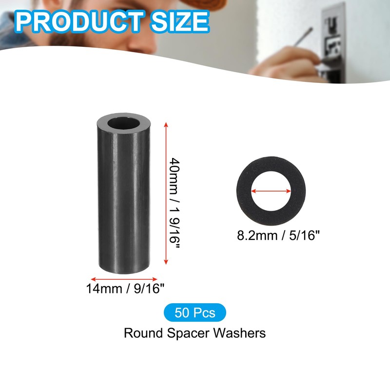 PATIKIL 50 Stück M8 ABS-Abstandshalter 5/16" ID x 9/16" OD x 1 9/16" L Kunststoff-Rund-Abstandshalter Unterlegscheiben Schwarz Abstandsmutter Unverzahnt