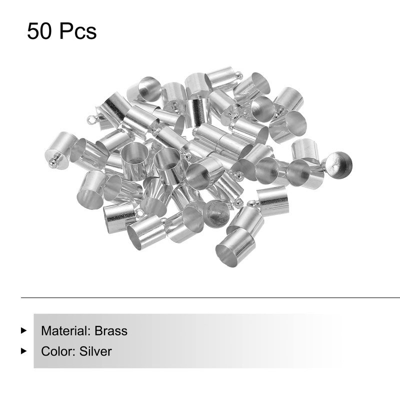 PATIKIL 50Pcs Cord End Caps, 8.6mm End Cap Barrel Beads Kumihimo End Caps Brass for Leather Cord, Tassels, Jewelry Making 13mm Length Silver
