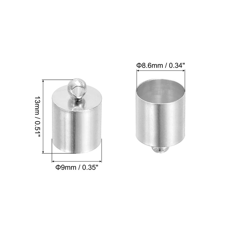 • Inner Diameter: 8.6mm/0.34 inch; Outer Diameter: 9mm/0.35 inch; Length: 13mm/0.51 inch; Material: Brass; Color: Silver.