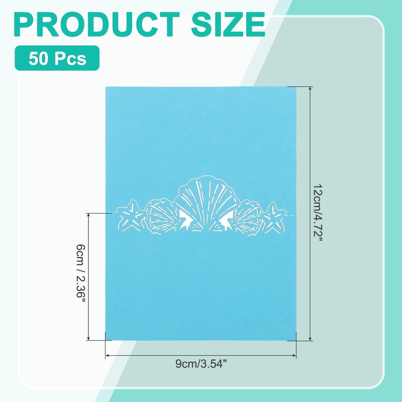 - Material: Paper; Color: Sky Blue; Size: 12 x 9cm / 4.72 x 3.54inch; Folded Length: 6cm / 2.36inch; Packing List: 50pcs of table place cards
