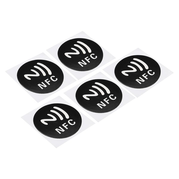 PATIKIL 5pcs NFC Sticker NFC213 Tag Sticker 144 Byte Memory Full Programmable Blank Circle 30mm Diameter NFC Tag Phone NFC Enabled Devices Black