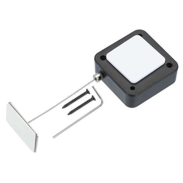 - Color: Black; Material: ABS, 304 Stainless Steel; Size: 45x45x16 mm/1.77x1.77x0.63 Inch; Steel Cable extending up to 2 m/6.6 ft; Packing List: 1 x Retractable Remote Control Tether, 2 x Screw, 1 x Wrench & Adhesive Tape