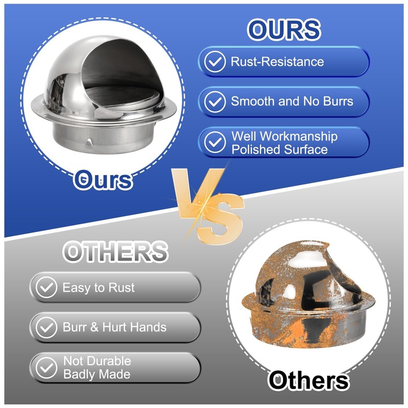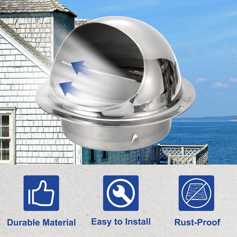 - Advantage: Crafted from stainless steel material, it is sturdy and durable, not easy to break. Designed with a fixed buckle to avoid falling off. The stainless steel vent cover features a backdraft damper which opens and closes automatically to prevent unwanted wind, air, water, dust returning back to ducted ventilation system.