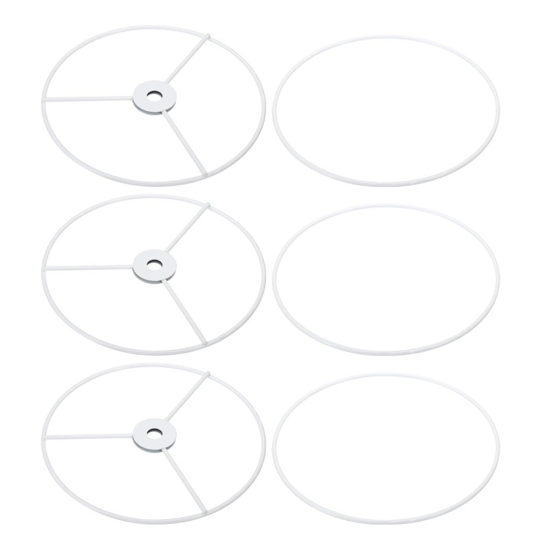 - Material: Iron; Surface Treatment: Baking Finish; Color: White; Diameter: 15cm / 6"; Wire Diameter: 3.5mm / 0.14"; Inner Dia.: 1cm / 0.39"; Packing List: 3 x Lamp Shade Ring Frame