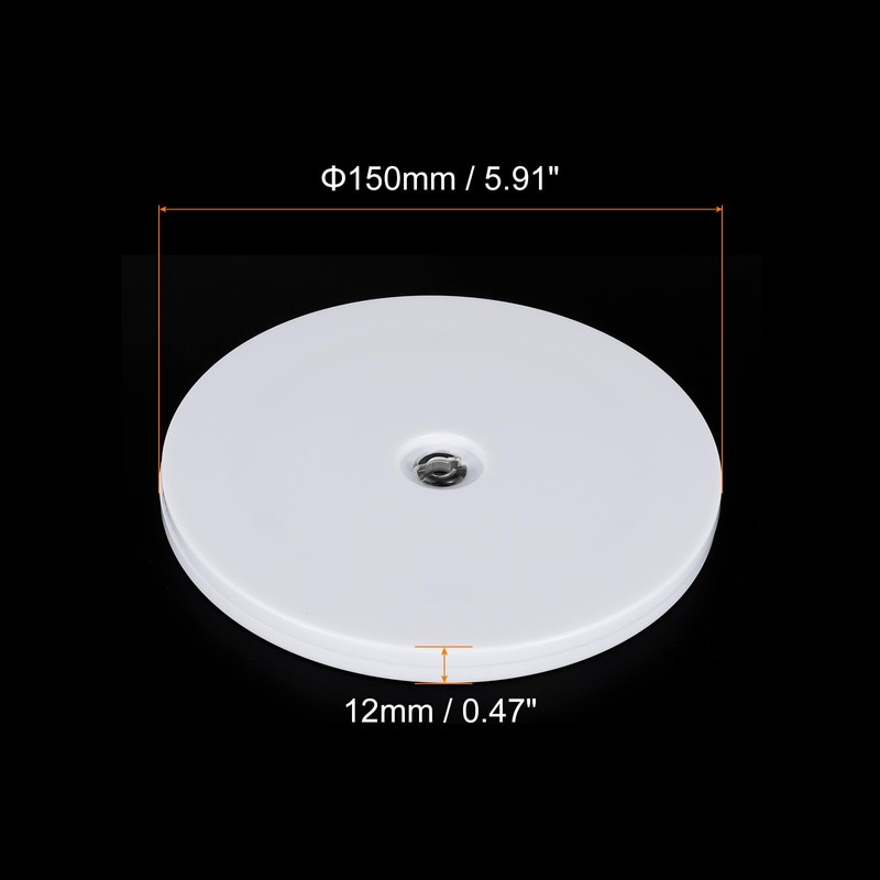 - Color: White; Outer Diameter: 150mm / 5.91 inch; High: 12mm / 0.47 inch; Load-Bearing: 15kg/33lb ; Material: Acrylic Sheet,Stainless Steel Beads ; Package List: 1 Pcs x Rotating Swivel Turntable