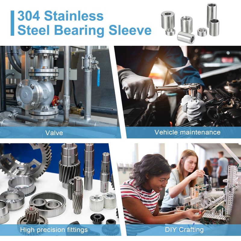 - Our spacers are made of durable 304 stainless steel, with screw external circular bushings designed for seamless integration with existing settings, providing solid spacing between components and bearing surfaces for rotating applications. This Stainless Steel spacer can be widely used in high-temperature, high-pressure, and highly corrosive pressure, valves, sealing parts of cylinder heads, and industries such as car, steel mills, chemical equipment, and engineering machinery.