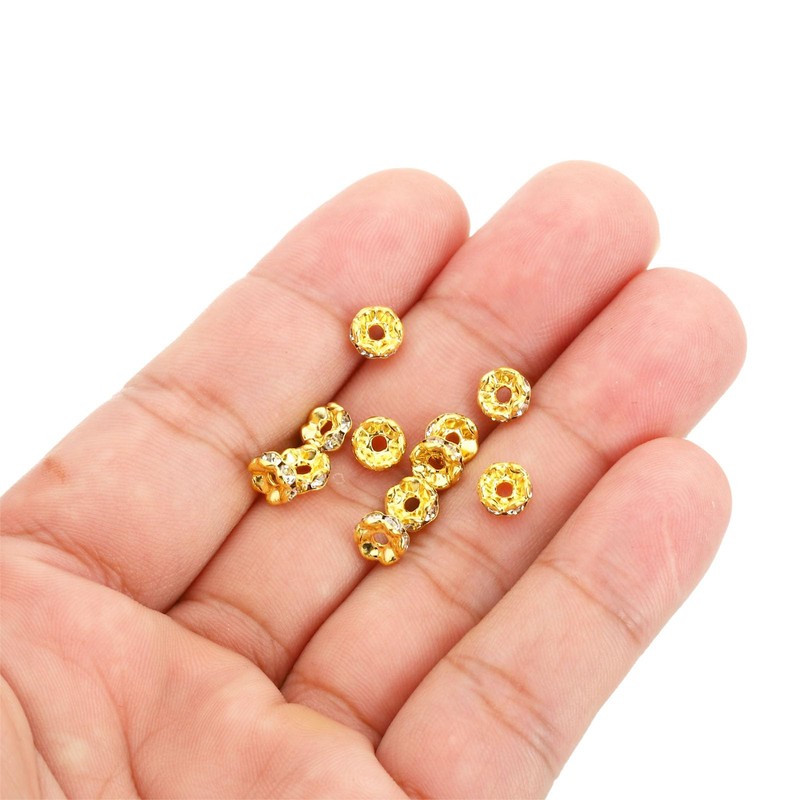 PATIKIL 6mm Spacer Beads, 200pcs Bead Spacers Rondelle Spacer Beads Rhinestone Small Round Bulk Glass Beads Wave for Jewelry Making Bracelets Necklaces DIY, Gold
