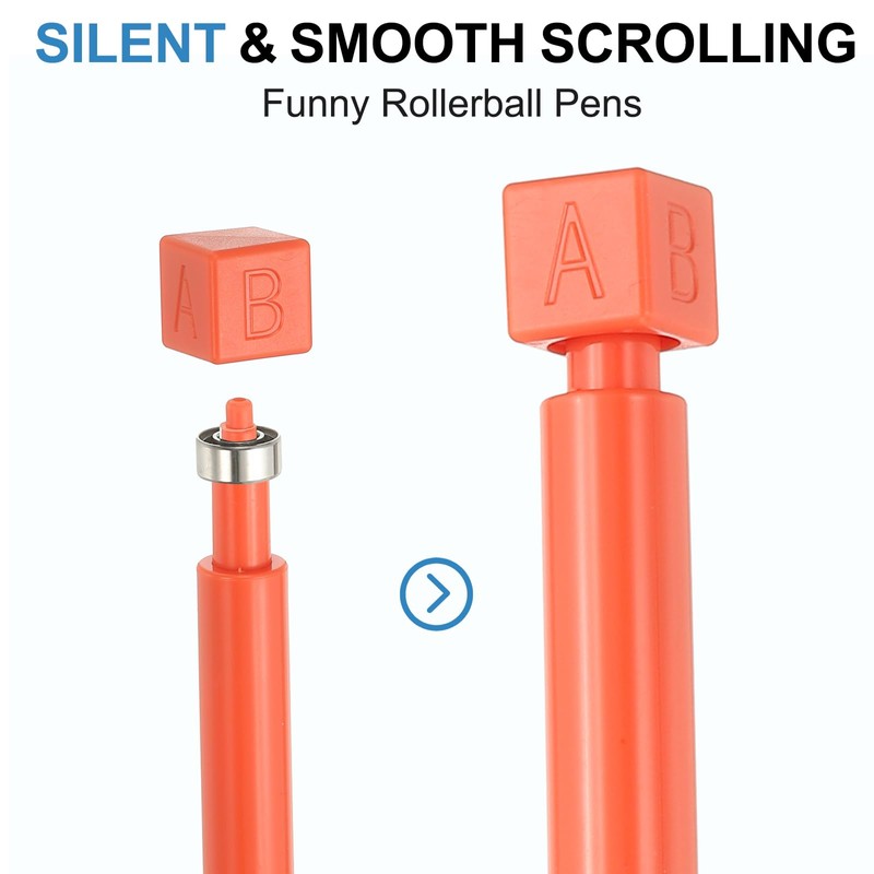- Application: This Funny Rotation ABCD pen is widely used in daily study, office, writing, drawing, test, etc. The classic office appearance of this pen allows you to adapt to a variety of scenes.The roller ball pens are designed for drawing, coloring, taking notes, marking, doodling, creating, writing, etc. Widely used for journaling, writing, offices, classrooms, homes, studios and other places.