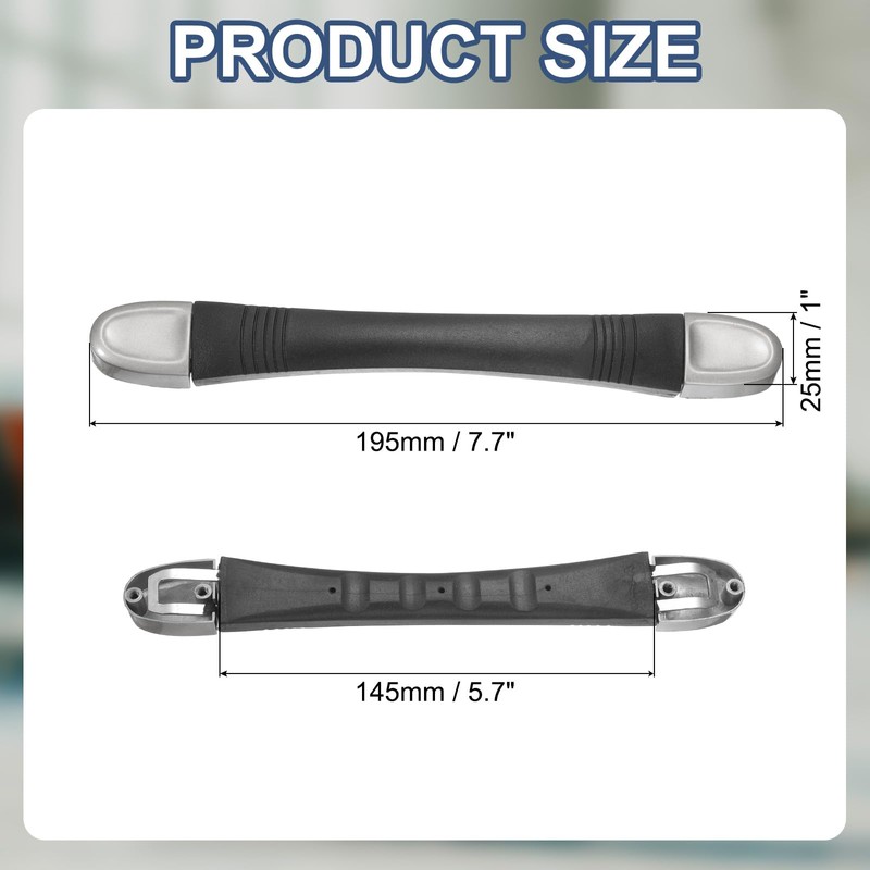 - Packing List: 1Pcs*Luggage Plastic Replacement Handle + 4Pcs*Washers + 4Pcs*Screws; Width: 25mm / 1inch; Length: 195mm / 7.7inch; Handle Length: 145mm / 5.7inch; Color: Black.