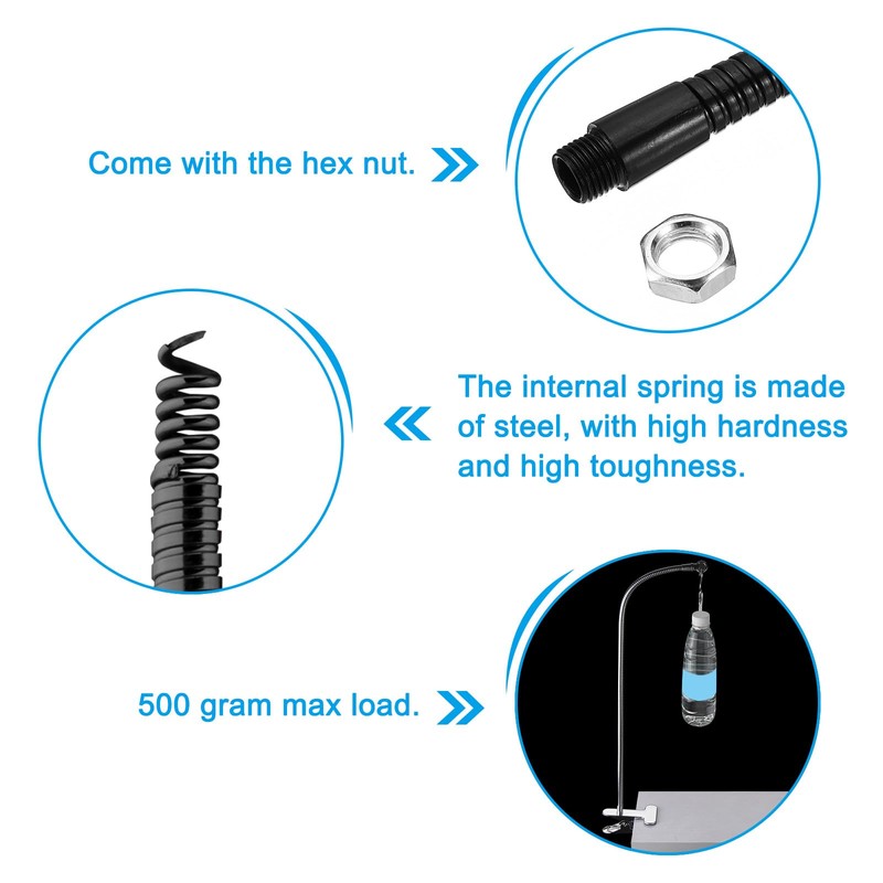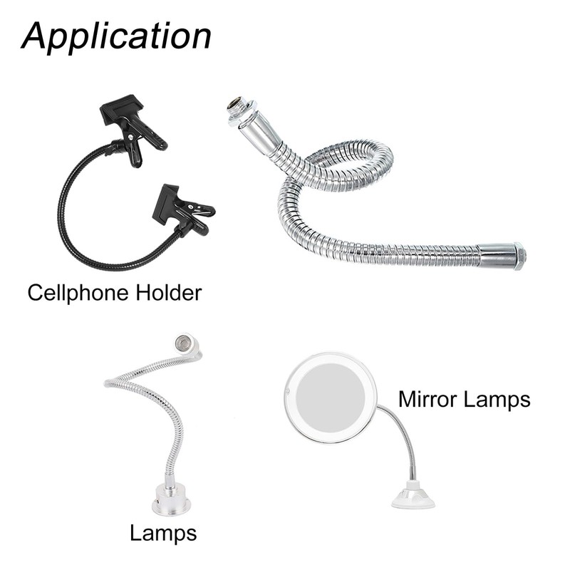 - Application Gooseneck hoses are widely used in lamps, spotlights, device lights, fishing lights and other lighting fixtures, and can also be used in DIY applications such as test tools, PCB repair tools, microphone stands, table mounts, mirror brackets or other DIY positioning brackets, repair processing equipment, mechanical equipment, antennas and other DIY applications with flexibility, etc.