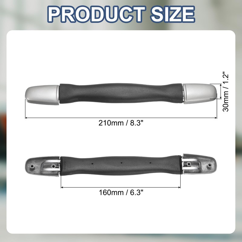 - Packing List: 1Pcs*Luggage Plastic Replacement Handle + 4Pcs*Washers + 4Pcs*Screws; Width: 30mm / 1.2inch; Length: 210mm / 8.3inch; Handle Length: 160mm / 6.3inch; Color: Black.