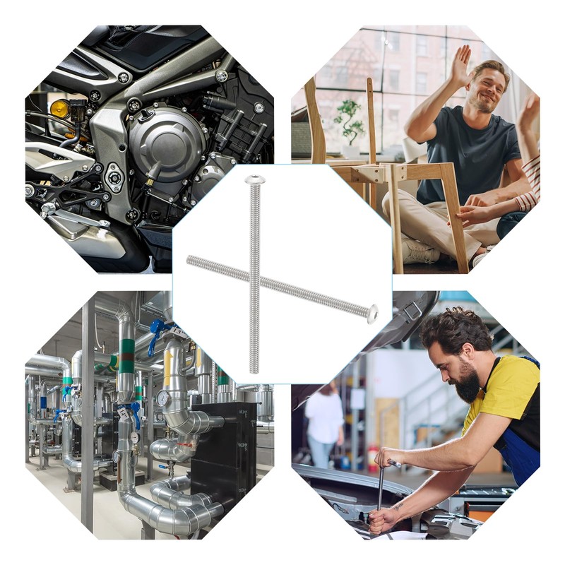 • Advantages: The button head socket cap screw bolts are made of stainless steel 304 (18-8) which is superior to other regular steel or any zinc-plated bolts. The 4.8 strength level provides high strength and corrosion resistance in bad environments, ensuring can withstand heavy loads and offering a long service life.