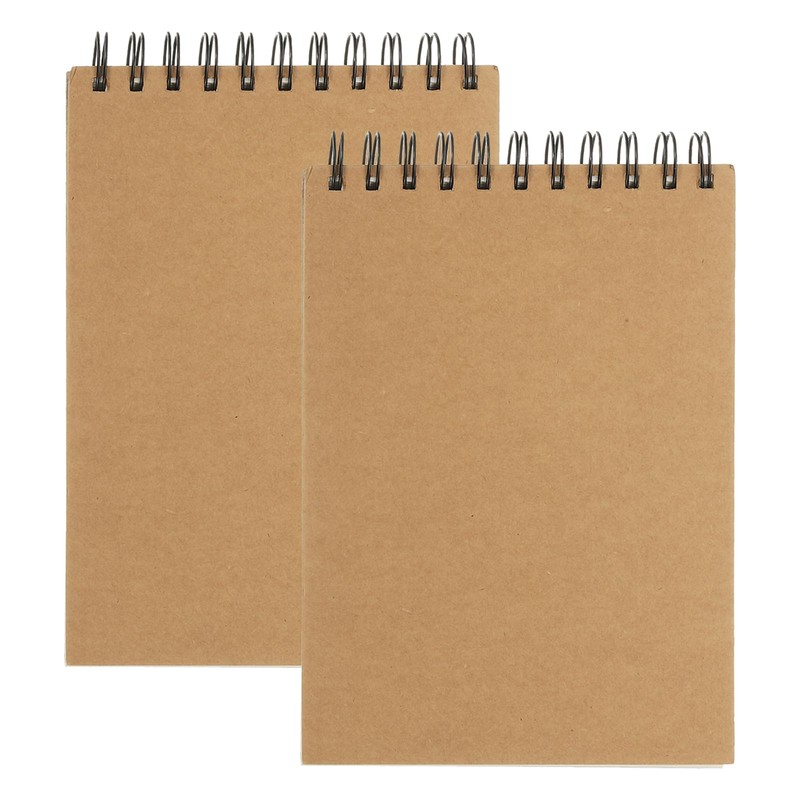 PATIKIL 8.6x5.6 Top Spiral Bound Sketchbook, 2 Pack 100 Sheets 100GSM/68lb Artistic Blank Drawing Painting Sketching Pad Kraft Cover Hard Base Sketch Book for Adult Beginner Artist
