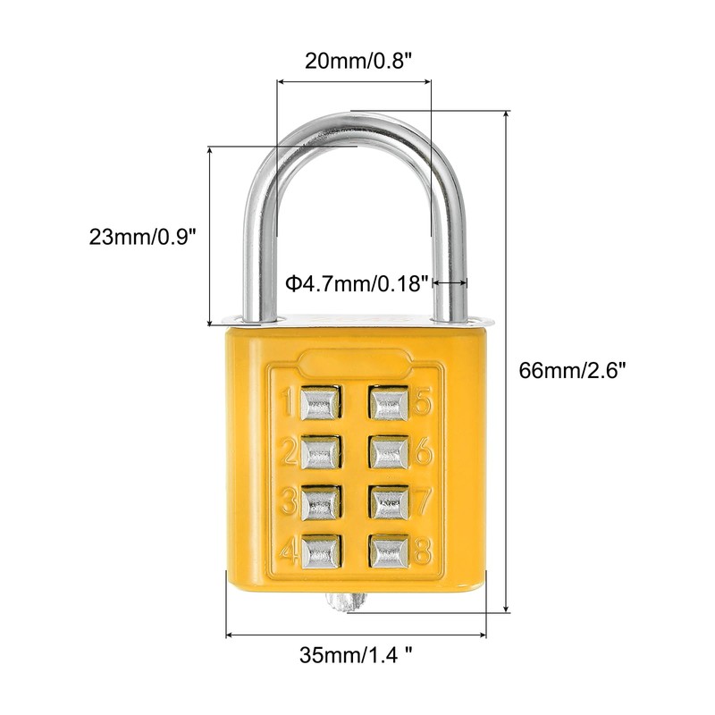 PATIKIL 8 Digit Combination Lock, 3 Pack 4 Position Locking Mechanism Push Button Security Digital Lock for Gym Sports Locker, Yellow