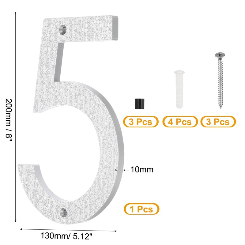 - Material: ABS Plastic; Height: 8" (Large sizes, they are easily visible outdoors. ); Width: 130 mm / 5.12 inches; Thickness: 10 mm; Package list: 1 x Modern floating house numbers with screws
