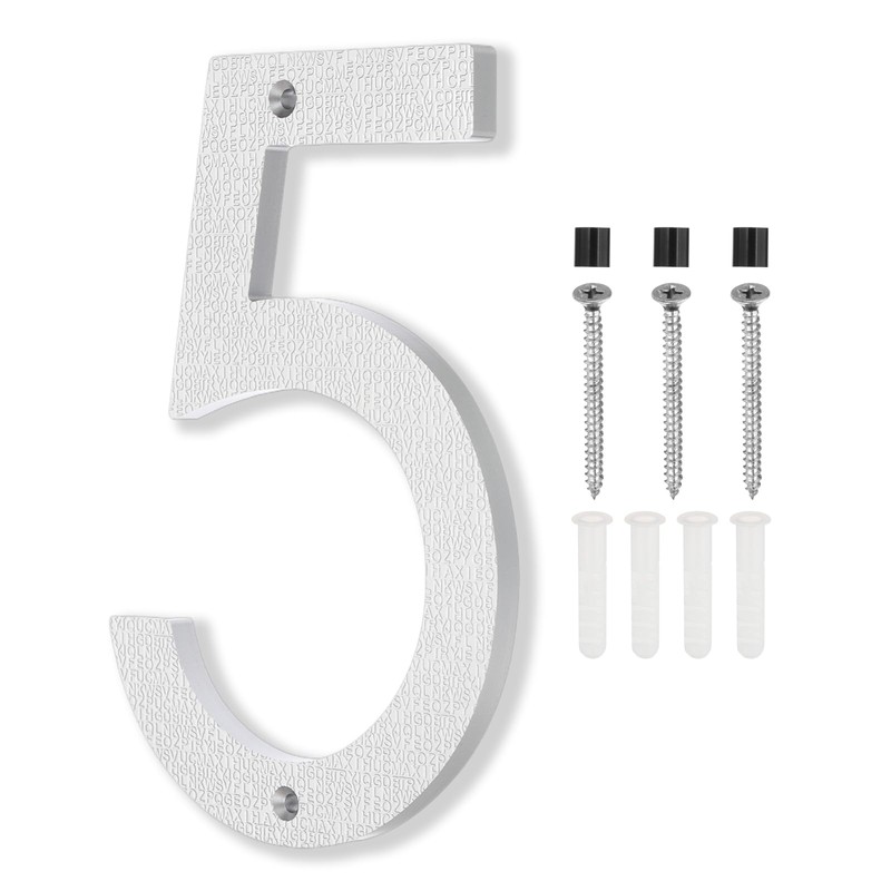 PATIKIL 8 Inch House Numbers, House Address Number Plate, Large Floating Modern House Number with Screws for Exterior Door Wall Street, Silver, 5