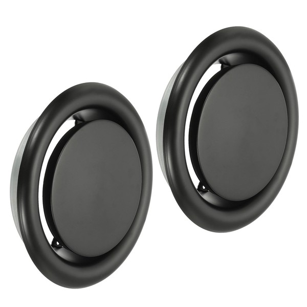 PATIKIL 8 Inch Round Ceiling Diffuser, 2pcs Metal Adjustable Wall Air Vent Diffuser Vent Duct Cover Exhaust Supply for Kitchen Bathroom Garage, Black