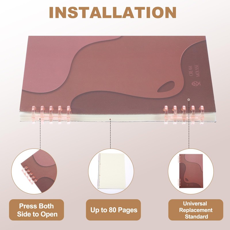 - Advantage: This refillable notebook is designed with a double five-ring binder that allows you to freely fill or reduce the amount of paper, easily opening the binder to take out a particular sheet without damaging the paper. Each notebook includes 60 sheets of double-sided paper and supports up to 80 pages of A5-sized replacement cores.