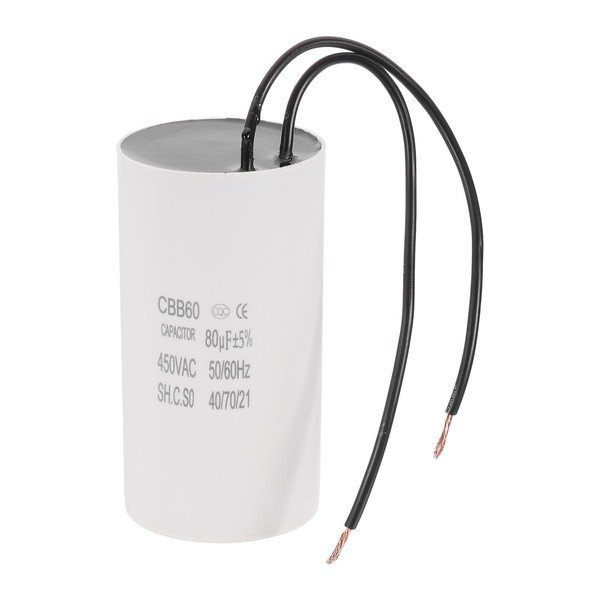 PATIKIL 80uF CBB60 Running Capacitor, Start Capacitor with 2 Wires, AC 450V Motor Start with a Frequency of 50Hz/60Hz, Suitable for Air Compressors Pumps, White