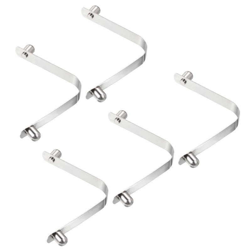 - Color: Silver; Material: Manganese Steel; Body Size: 54 x 10 x 0.5 mm/2.13 x 0.39 x 0.02 inch (L*W*T); Push Buttons Size: 9 x 7.3 mm/0.35 x 0.29 inch (L*Dia); Packing List: 5 x Spring Clips