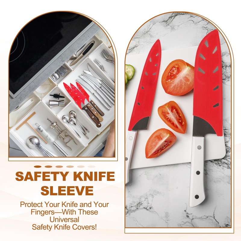 - Protect your knife—and your fingers—with these universal safety knife covers! Designed for secure blade protection, these sleeves keep edges covered during storage or transport, preventing accidental cuts and blade damage