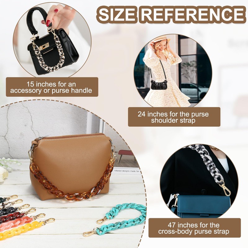 - Application: Elevate your look with Cute Acrylic Purse Straps—where fashion meets function! They can be used to decorate bags of different styles. This chain strap is designed for all sizes of bags, such as clutches, crossbody bags, handbags, wallets, satchel bags, shoulder bags, tote bags, or similar bags