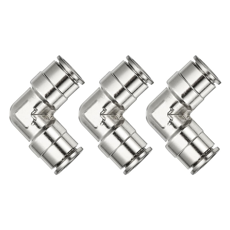 PATIKIL Air Line Fittings, 2/5" Elbow Nickel-Plated Brass Push to Connect Quick Connect Fittings Pipeline Hose Connector Replace Repair Kit for Air Compressor Pneumatic System, 3 Pcs