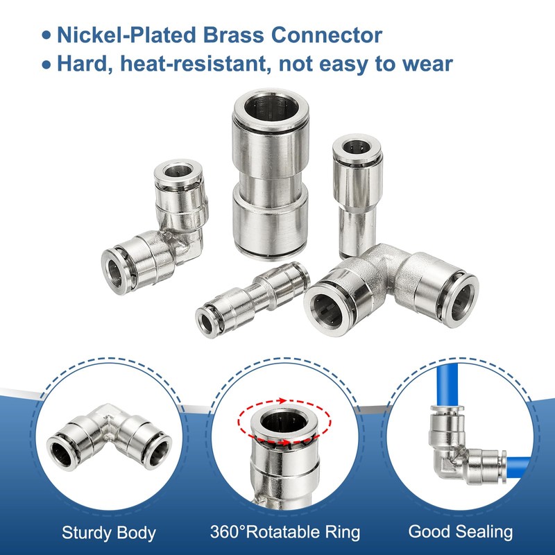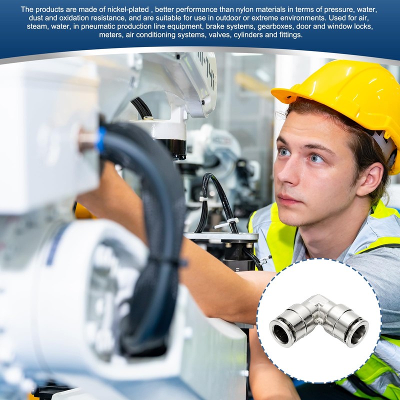 - Application: The products are made of nickel-plated , better performance than nylon materials in terms of pressure, water, dust and oxidation resistance, and are suitable for use in outdoor or extreme environments. Used for air, steam, water, in pneumatic production line equipment, brake systems, gearboxes, door and window locks, meters, air conditioning systems, valves, cylinders and fittings.