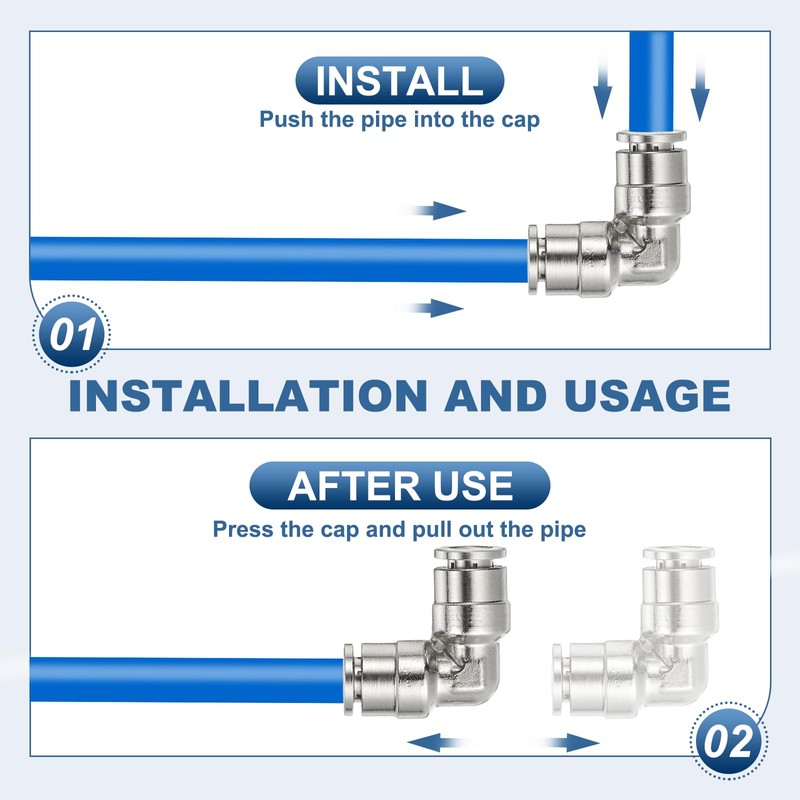Push in the pipe to complete the installation, and press the button to release the pressure to disassemble, easy to use.