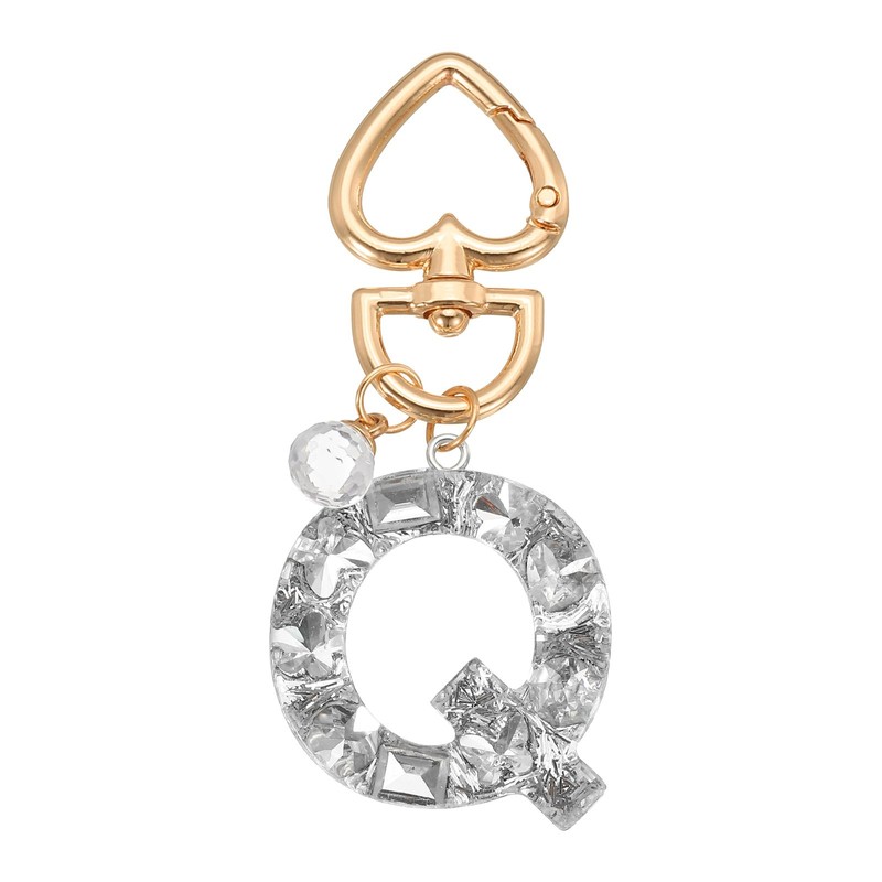 PATIKIL Alphabet Initial Letter Keychain, Cute Heart Crystal Keychains Car Keyring Letter Q Pendant Charm Key Chain for Key Wallet Purse Handbag Backpack, Silver
