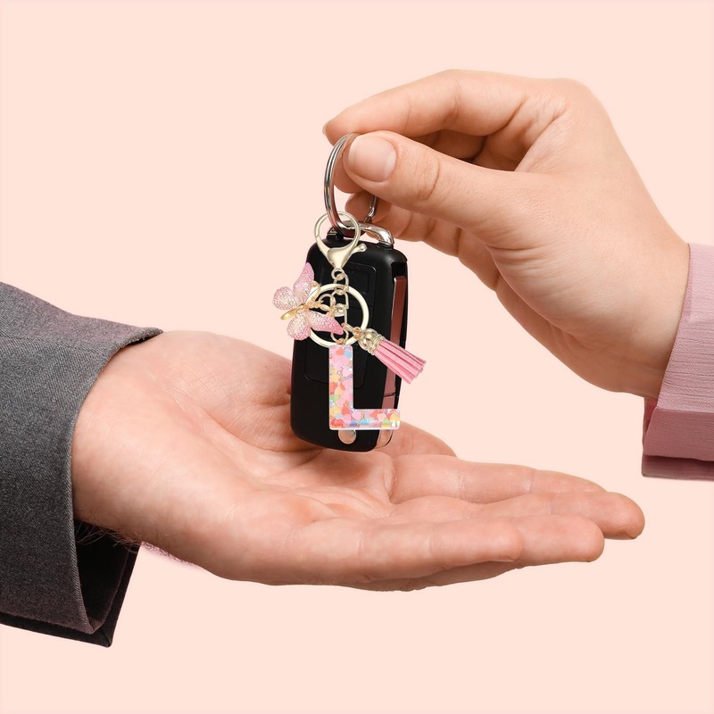 - Advantage: This cute letter keychain comes with tassels and butterfly pendants and is made of epoxy resin material, which is hard and does not deform. The keyring is made of alloy electroplating, with a unique initial design and sequins, which are gorgeous and beautiful