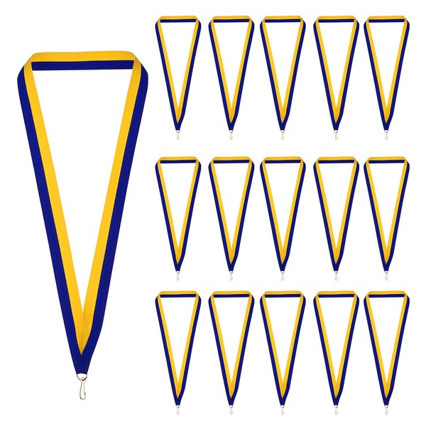 PATIKIL Award Neck Ribbons, 25 Pack Polyester Medal Lanyards with Snap Clip Blank Award Ribbon for Competitions Achievement Sports Party, Blue/Yellow