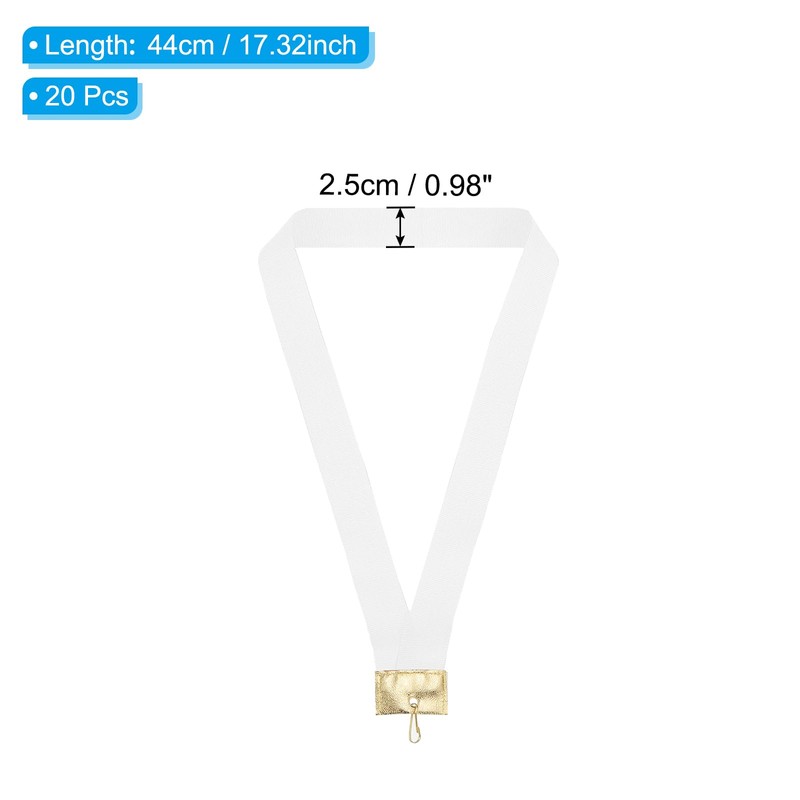 - Specification: Color: White; Material: Polyester, metal; Size: 44 x 2.5 cm/ 17.32 x 0.98 inch (L*W); Packing List: 20 x Award Neck Ribbons