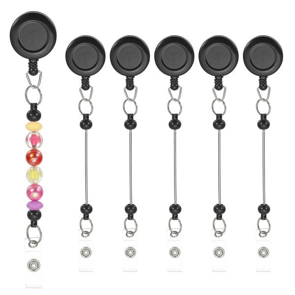 - Specification: Material: ABS, Metal; Color: Black; Applicable Bead Hole Size: 2 cm or More; Beadable Part Length: 6cm/ 2.4 inch; Size: 19 x 3.2cm/ 7.5 x 1.3 inch (LxW); Retractable Length: 74cm/ 29.1inch; Package List: 6 Pcs x Beadable Badge Reels