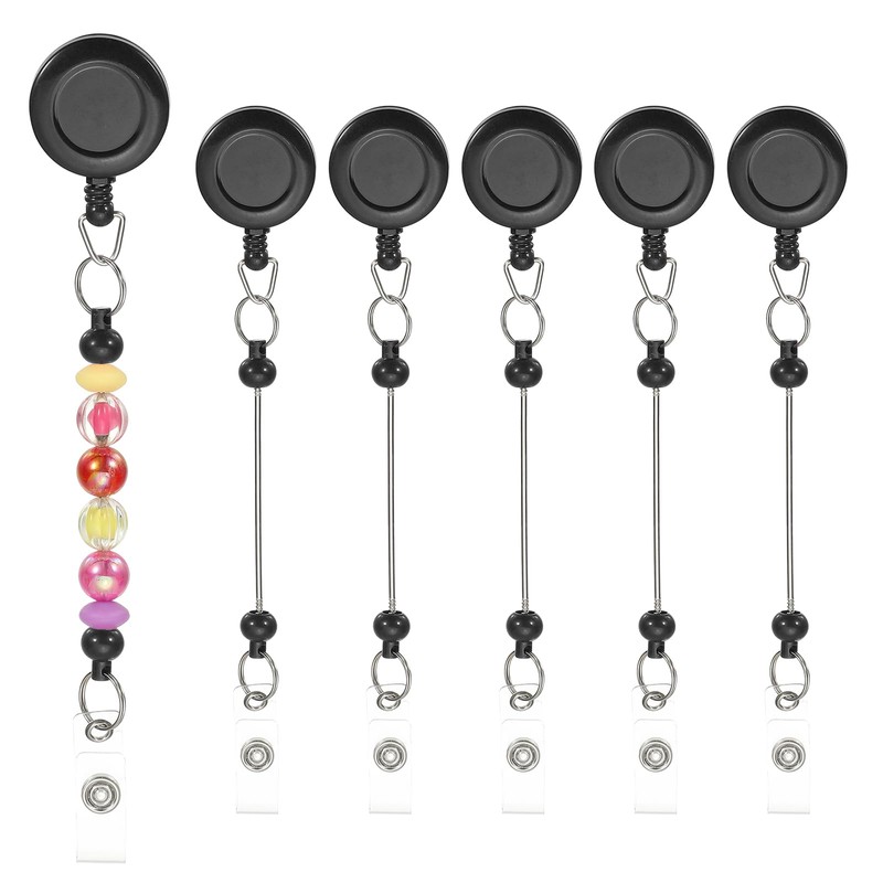 - These beadable badge reels are both personalized and functional, easily attaching to clothing or belts. Simply pull the retractable cord to swipe cards for door access without removing the card holders or keys. Widely used for hanging work cards or keys, they are suitable for various professionals, including teachers, office workers, volunteers, and more.