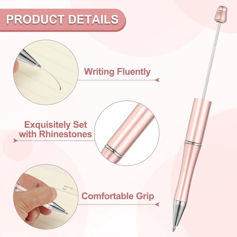 - Advantage: DIY pens are made of durable plastic and is not easily deformed after long-term use. The polished pen body is full of texture, light and portable. The DIY beaded ballpoint pen is suitable for most bead holes. You can turn the top to freely combine silicone beads, rhinestone beads, metal beads, large-hole European beads, glass beads, and other beads to add to the pen to create your own ballpoint pen.
