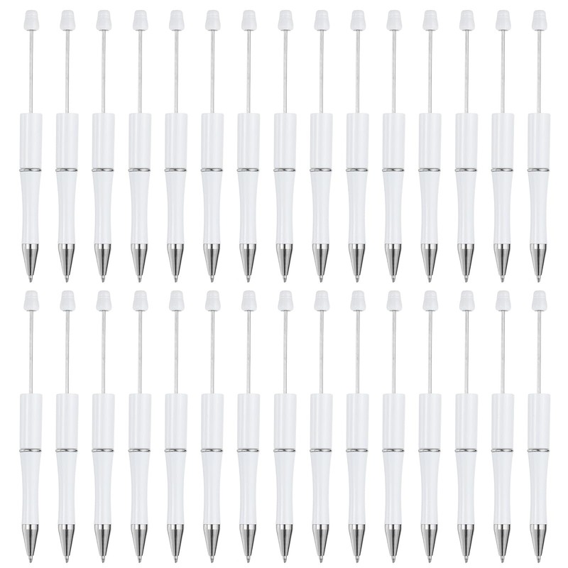 PATIKIL Beadable Pens, 30 Pack Black Ink Plastic Bead Pen Creative DIY Ballpoint Pens for Teacher Office DIY Crafts Party Decorations Handmade Supplies, White