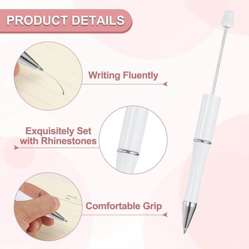 - Advantage: DIY pens are made of durable plastic and is not easily deformed after long-term use. The polished pen body is full of texture, light and portable. The DIY beaded ballpoint pen is suitable for most bead holes. You can turn the top to freely combine silicone beads, rhinestone beads, metal beads, large-hole European beads, glass beads, and other beads to add to the pen to create your own ballpoint pen.