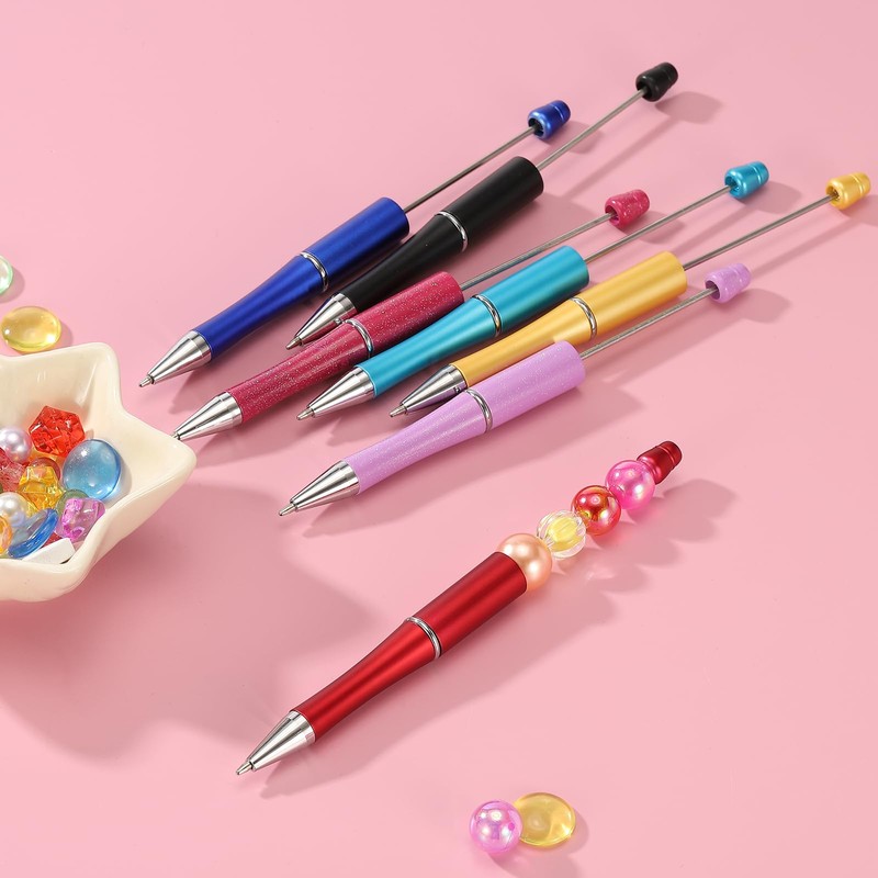 - Advantage: DIY pens are made of durable plastic and is not easily deformed after long-term use. The polished pen body is full of texture, light and portable. The DIY beaded ballpoint pen is suitable for most bead holes. You can turn the top to freely combine silicone beads, rhinestone beads, metal beads, large-hole European beads, glass beads, and other beads to add to the pen to create your own ballpoint pen.