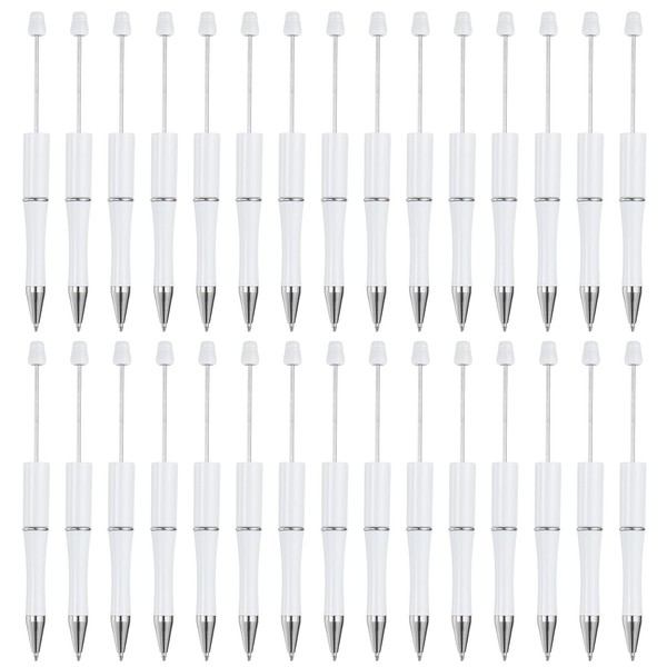 PATIKIL Beadable Pens, 30 Pack Black Ink Plastic Bead Pen Creative DIY Ballpoint Pens for Teacher Office DIY Crafts Party Decorations Handmade Supplies, White