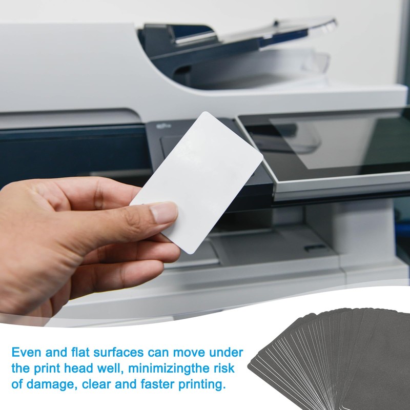 - Advantage: Blank credit cards are made from PVC, sturdy, resistant to cracking or fading, printable on both sides, waterproof, and have smooth edges without burrs, for long-lasting service. Even and flat surfaces can move under the print head well, minimizing the risk of damage, clear and faster printing