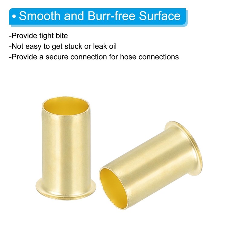 • Specification: Color: Gold Tone; Material: Brass; Suitable for 10 mm / 0.39" OD x 3 mm / 0.31" ID Tube; Height: 14 mm / 0.55 Inch; Package List: 25 Pcs x Brass Compression Insert