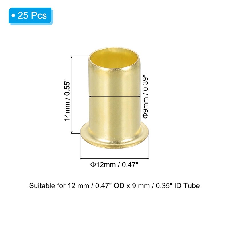 - Specification: Color: Gold Tone; Material: Brass; Suitable for 12 mm / 0.47" OD x 3 mm / 0.35" ID Tube; Height: 14 mm / 0.55 Inch; Package List: 25 Pcs x Brass Compression Insert